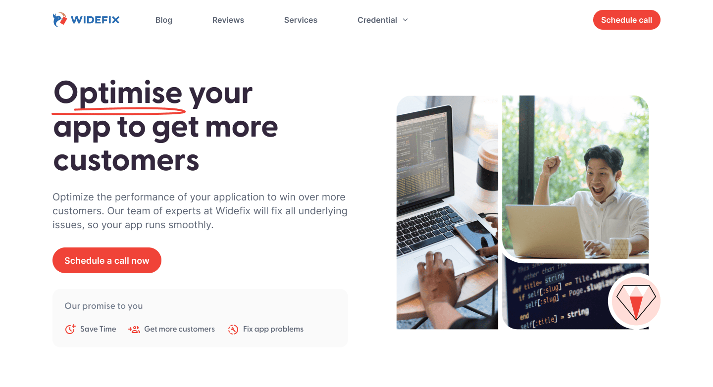 WideFix is a one-stop solution for app performance optimization, helping businesses unlock the full potential of their applications. They approached Design Stratum to redesign their website with the goal of improving user engagement and increasing lead generation. At the time, they were struggling with a high bounce rate, low conversions, and an outdated interface. WideFix needed a faster, more modern, and visually appealing design that better reflected their brand and attracted new customers.